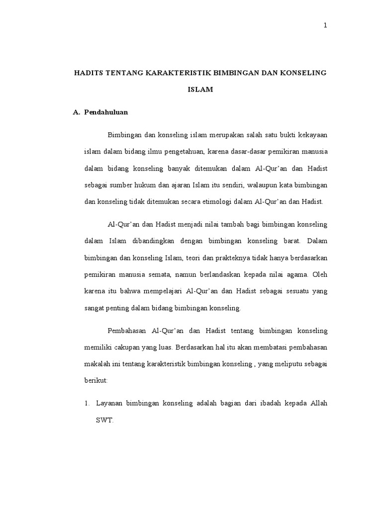 Hadist Tarbawi Bimbingan Konseling Karakteristik Bimbingan Dan Konseling Islam Makalah Bk B 010 Stain Batsa Pdf
