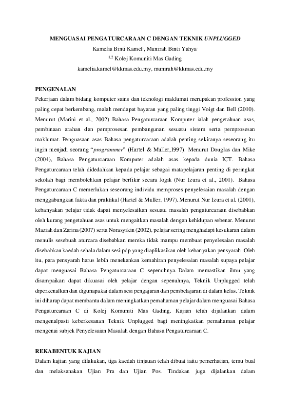 Pdf Menguasai Pengaturcaraan C Dengan Teknik Unplugged Kamelia Kamel Academia Edu