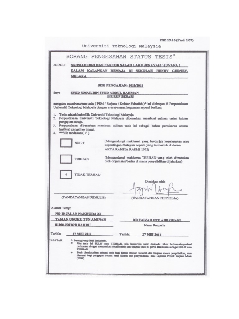 Sahsiah Diri Dan Faktor Salah Laku Jenayah Juvana Dalam Kalangan Remaja Di Sekolah Henry Gurney Melaka Pdf
